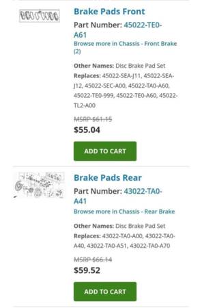 2008 -2012 Honda Accord. Brand New. KYB SR4173 SR4174 SR4189 SR4190 shocks/struts and Honda OE brake pads. $750 value. $500 obo.