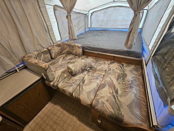 2500 OBO NO LOW BALLS Pop up camper, owned for a couple years now. Replaced the roof still needs some updates on the inside such as new curtains etc. But we used it as is and just getting a new one will make someone a great first time pop up. Sleeps 8!!! Propane fridge. has a sink as well.