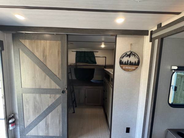 Smart Storage & Kitchen: Walk-in pantry provides ample space for pantry essentials. Whip up feasts in the full interior kitchen or the convenient exterior setup with a burner—ideal for outdoor grilling. Pass-through storage keeps outdoor gear organized, while dual entry doors make accessing your home-away-from-base effortless.