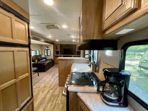 Well maintained camper that is ready to use for your adventures. Total length including trailer hitch is 36’ 11”. This beautiful travel trailer is truly a home away from home. It's well equipped with 15,000 BTU Central/Ducted, Gas Grill Cook Top, Microwave/Hood Combo, 6 Gallon Gas/Electric Water Heater, 27"-32" Flat Screen TV, CD Player, Electric Jacks, Power Hitch Jack, Fireplace, Outside Shower, power Awning, Aluminum Wheels, Power Slide-Out Bedroom, Power Slide-Out Room. A perfect way to relax in the calmness of the outdoors.