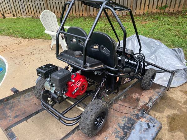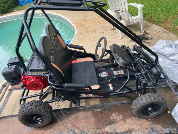 I have a kids 5hp 2-seater go kart for sale. The kids played with it for less than a week. I purchased a brand new motor (I have not even put gas in the new motor yet until I get a response due to cold weather this will make the gas go bad) and sprocket & tires for it. I still need to purchase a battery for the lights and horn. When I purchased the battery the price will be $850 for the go kart. They sale for $1400. I purchased it on sale for $1200. It is in great condition and now it is taking up space. Please do not ask because I will not take anything lower than $800 or $850 if I purchase a battery for it.