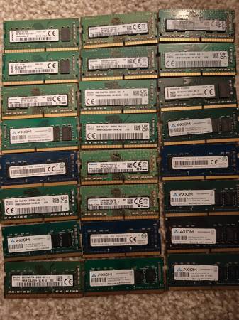 Various memory sticks that have been pulled out from the working computers. Just let me know what you need and I will look it up for you. Brands include Kingston, Samsung, Nanya, Hynix, Axiom up to...