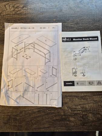Table in Ex shape. Chair has some wear, comes with rollers. Text only.
