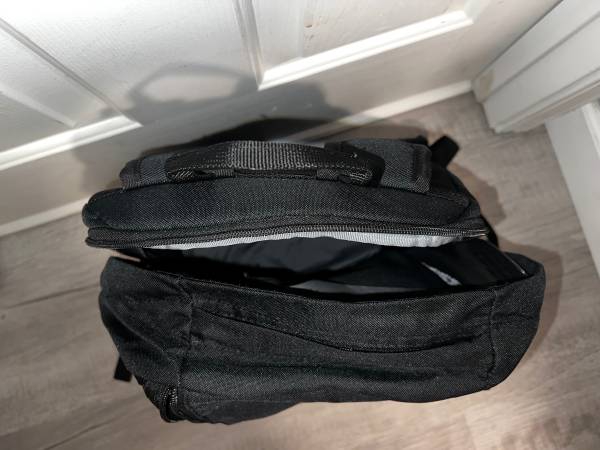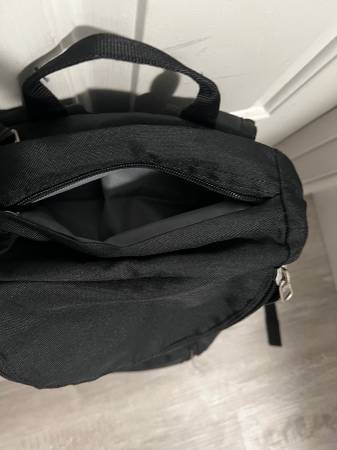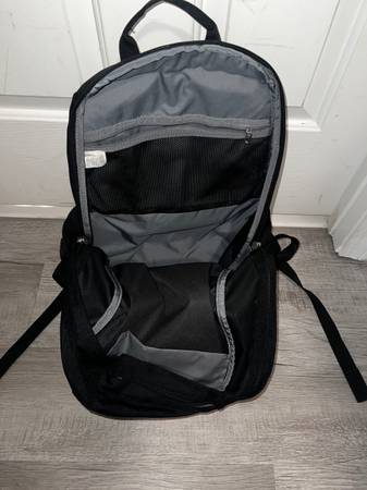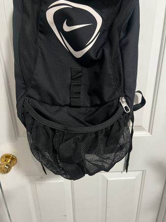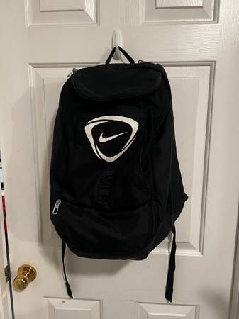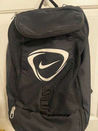 gently used in great condition Nike backpack with a separate zippered pocket for a soccer ball. Main compartment with small lined zippered compartment on top and zippered pouch inside. Front zippered compartment on front and Mesh pocket on one side