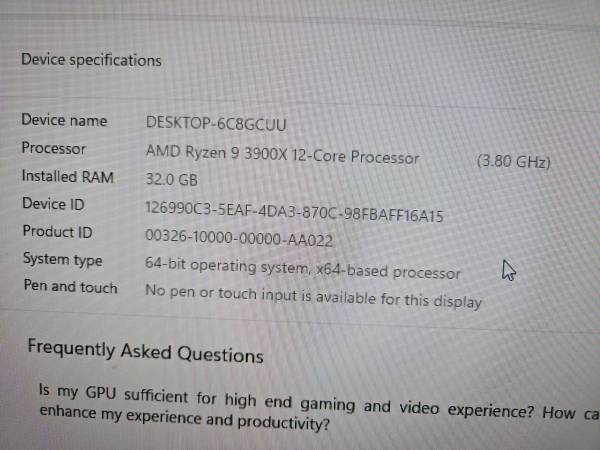 CORSAIR VENGEANCE ram 32GB 3600MHz.CPU AMD Ryzen 9 3900X 12-core 3.80 GHz.