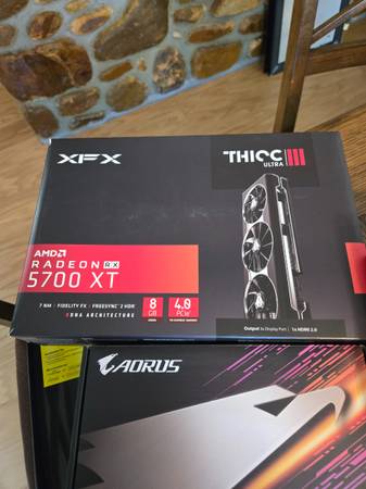 XFX AMD RADEON RX 5700 XT GPU. SABRENT ROCKET NVME PCIe M.2 2TB for hard drive.