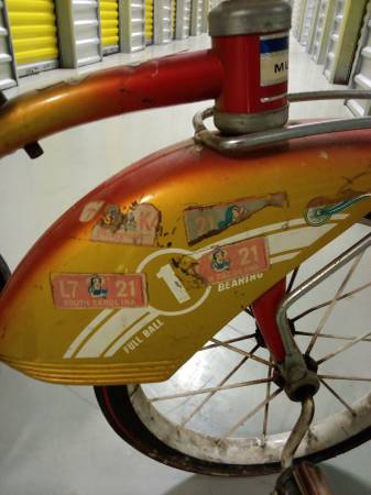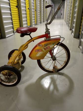 Murray EZ step antique tricycle. This is from the 60's. Stickers are from the early 70's. Pretty cool collectors item.