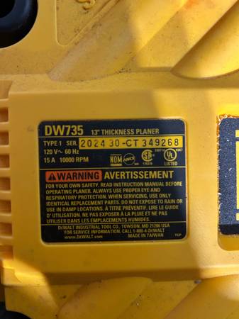 DeWalt Planer. Model#: DW735. Can take 6” x 13” boards. Is literally brand new, has never seen a piece of wood. I bought it a few months ago, but couldn’t use it at the time. I’ve since lost interest in the project and it’s just collecting dust. The table that it is on in the pics is not included/for sale.