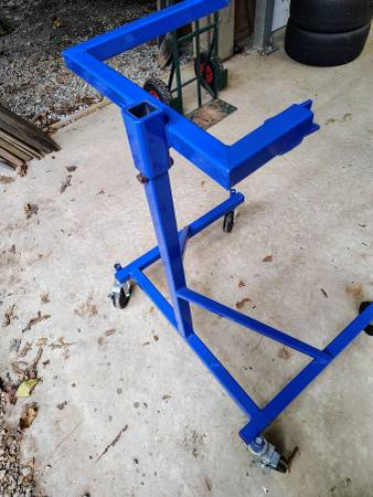 Custom made engine stand designed for Honda D- Series engines. B- Series may also fit but I'm not sure of that. Accommodates transmission, too. Large, easy rolling wheels, powder coated frame.