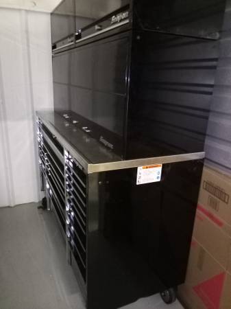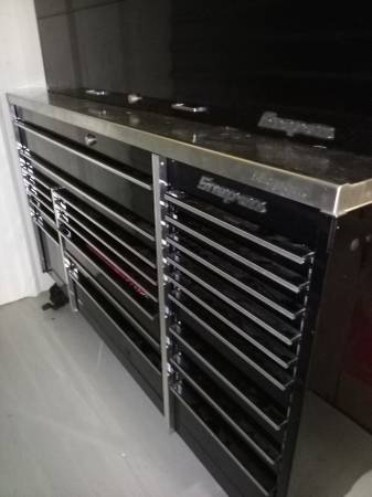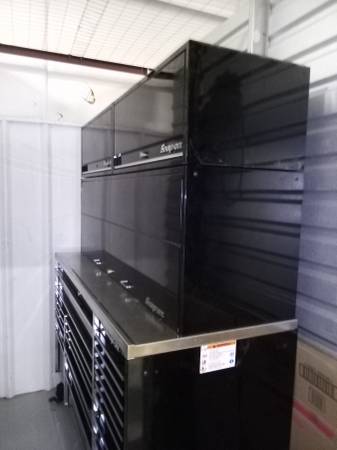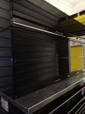 KRL triple bank masters series roller cab with riser and 2 bulk overhead cabinets. Purchased new in 2005. Has been used by a line tech for many years so has signs of use. Missing one lock cylinder for one of the overhead cabinets (see photo). Stainless steel top. Roller cab is 892lbs. Riser weighs about 200 lbs. Bulk over head cabinets weigh about 75lbs each. Breaks down into 4 pieces so it is easier to move. 2 swivel casters with locks and 2 fixed casters. Casters are the sprung style (older) super heavy duty. No flat spots after all these years. Tool box is in a storage unit currently.
