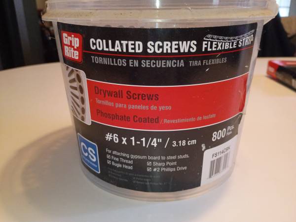 Don't do enough drywall work anymore to justify this tool. Comes with all original accessories and carrying case (which is quite dusty). Also comes with a bucket of 1-1/4" screws. Nearly all 800 are there. I highly recommend watching Ridgid tutorial video if you have never used this tool before. It's very helpful.