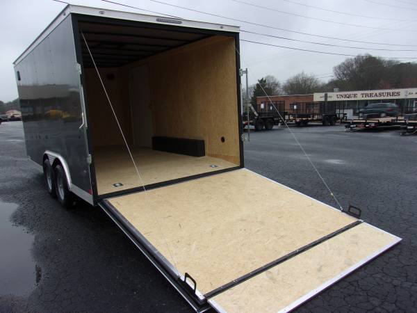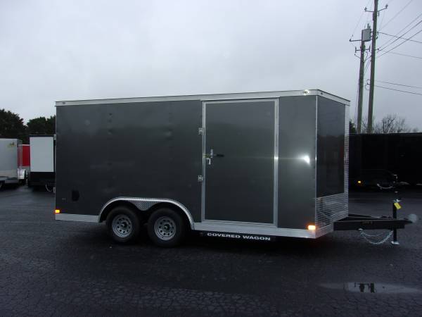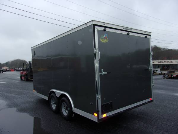 8- 1/2x16 Covered Wagon 5 ton Enclosed Car Hauler- 60" Triple Tube Tongue, 030 Siding, Semi Screwless Exterior, 5200# Axles With Brakes, LED lights, 2 5/16 hitch, Radial tires, 16 in centers on floor and walls 7 ft interior height, Beaver tail, 4- 6000# D-Rings, HD ramp with flap, 15" Radial Tires, Side door Rv latch and lock Plus Bar Lock , Wall Vents, Ceiling Liner, Interior Light , We sell only the best quality trailers. See this and many other trailers at Youngblood Motor Company 1600 Athens Hwy. Madison,Ga. 30650 Ph. 706-342-2242