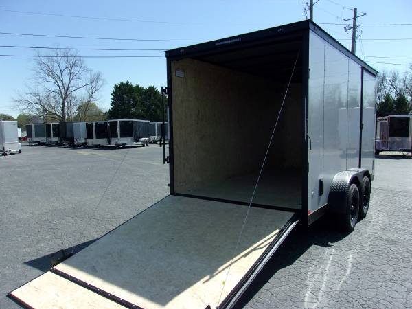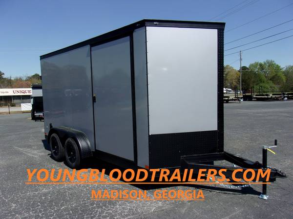 Covered Wagon 7x14 Enclosed Tandem Trailer- 2 5/16 hitch, 7Ft interior height, Blackout Package, PolyCore Exterior, 3500# axles with brakes on both axles, 4 Floor Mounted D-Rings, Semi Screwless Exterior, Side door and rear ramp door with spring assist, Interior light, Side Vents, LED Lights , 3/4 plywood floors treated, RV latch and lock , 15 Inch radial tires, Floors 16" and walls on 16" centers. Factory warranty, Youngblood Motor Company 1600 Athens Hwy. Madison,Ga. 30650 Ph. 706-342-2242 We have a large selection of enclosed and utility trailers