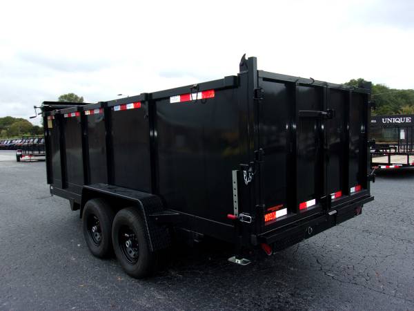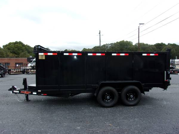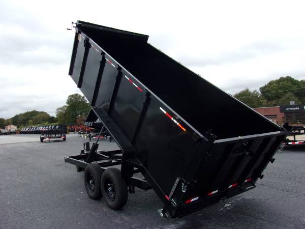 Down To Earth 7x16 Dump with 4Ft Sides- Trailer New- Duel 7000# axles with brakes, adjustable hitch, Rear barn double doors and Spreader Gate, Roll Tarp Included, Fully boxed frame, reinforced tubing and stake pockets on sides and front of trailer for extra support, 10 ply 16 in radial tires, 4 D-Rings, spare tire mount, Duel cylinders for max lift, Ramps to load your equipment, LED lights, Also comes with remote and battery Plus a battery tender to keep you charged. Tail lights come in enclosed box, 9380# Payload Capacity . We carry only the highest quality trailers. Factory warranty. See this and many other trailers at Youngblood Motor Company 1600 Athens Hwy. Madison,Ga. 30650 Ph. 706-342-2242