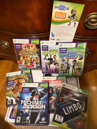 Xbox 360 with Kinect, Controllers, Cords, and Games - $250 (Furman area)
