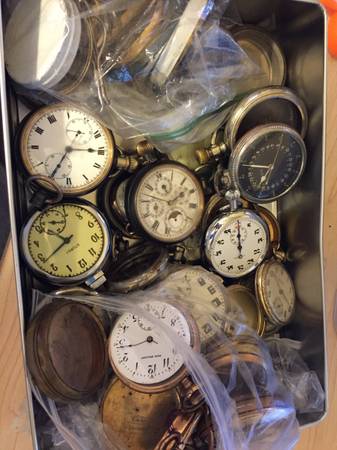 I’m buying pocket watches to add to my collection. I’m looking for mechanical watch movements, working or in need of repair. I’m looking for cases, crowns, hands, and other parts too. Single watches...