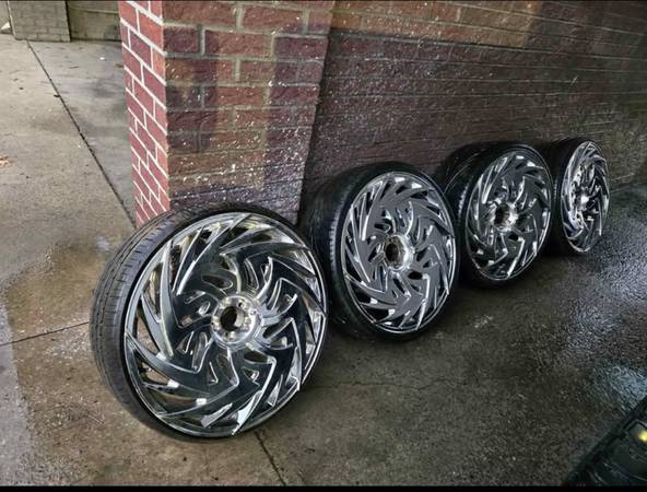 5 LUG UNIVERSAL Will need 2 tires eventually but can ride with these now 1 rim has leak/crack Need 2 center caps I have a link and website for those if needed
