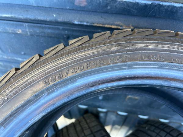 Yokohama 18 inch staggered tires. Off a Porsche boxster, they were stored out of the weather, they are 70% or better. Fronts are 235/40 18 and the rears are 255/40 18. Asking $250 obo call Joe